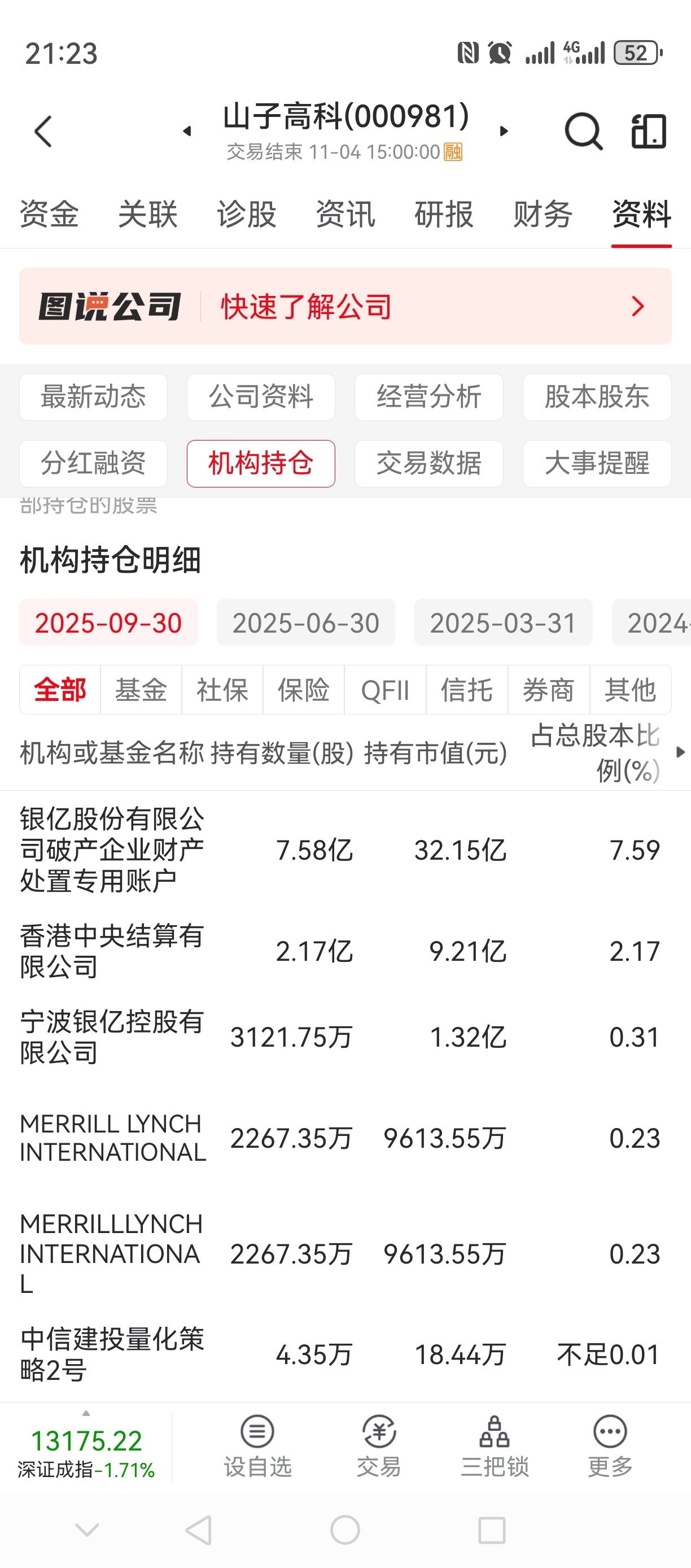 $山子高科(SZ000981)$ 大家看一下,这不是还有几家机构在里边吗,如果有问题机构是不是早就跑了?新人一枚,勿喷