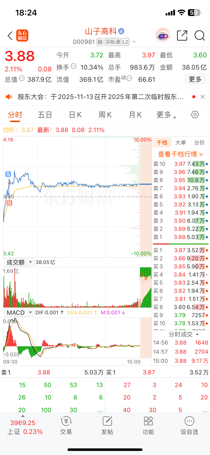 $山子高科(SZ000981)$ 今天做了个反T