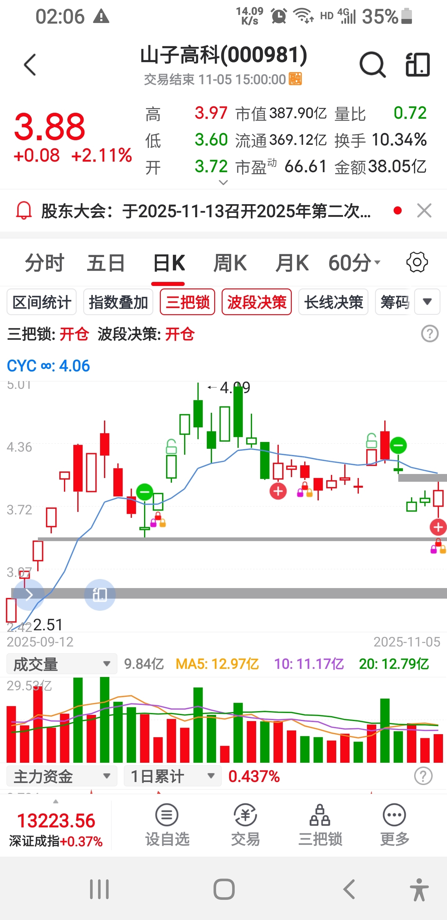 $山子高科(SZ000981)$ 指南针给出强烈买入信号