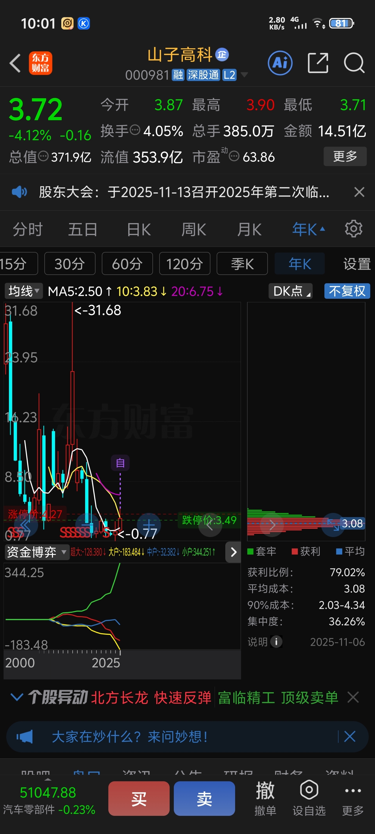 $山子高科(SZ000981)$ 如果筹码峰准的话,你们自己看看吧
