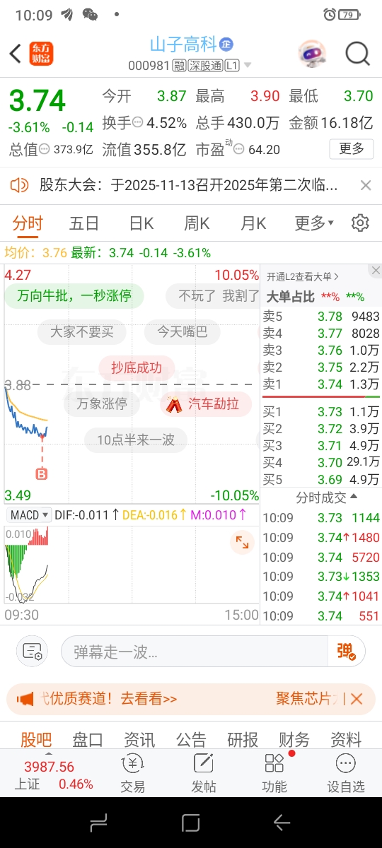 $山子高科(SZ000981)$ 下来就加仓,越低越便宜越好,一个字干