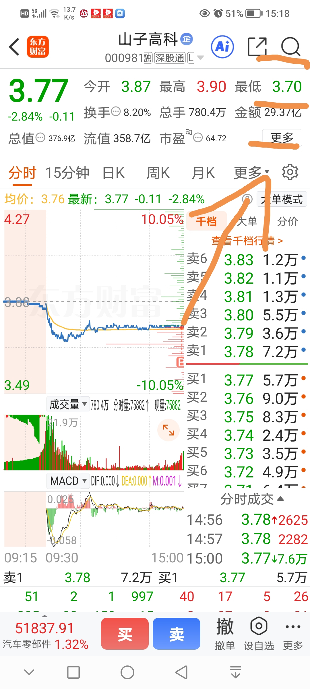 $山子高科(SZ000981)$ 跌不下去接点看看,看你是不是妖王