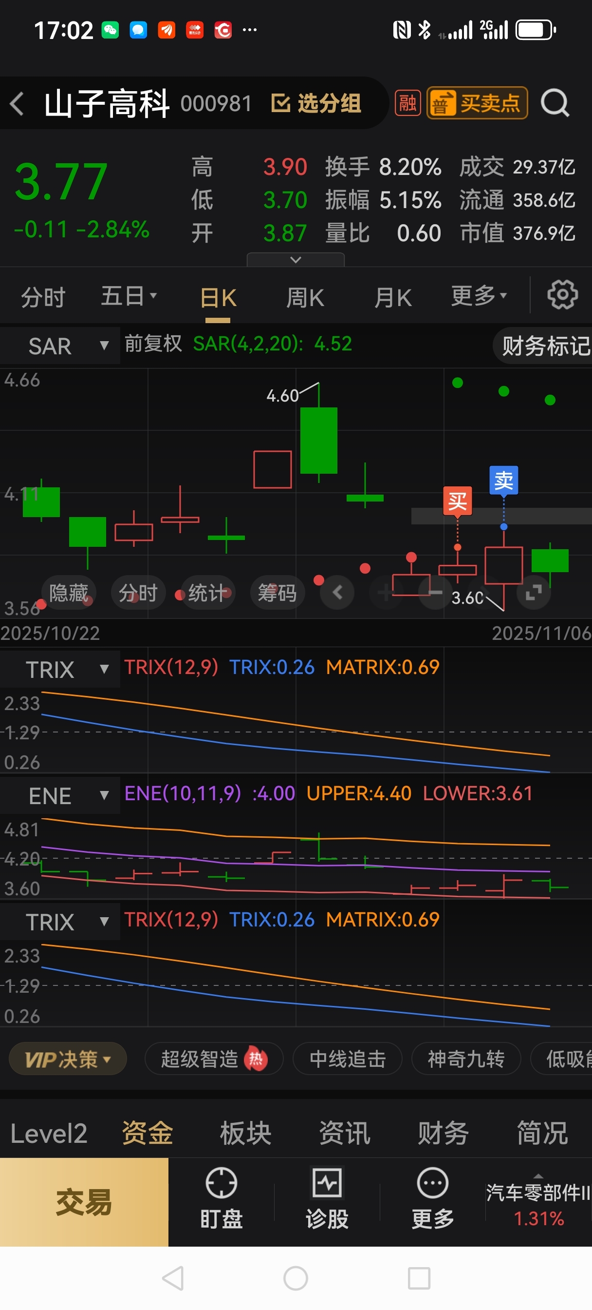 山子高科,昨天清仓3.90。今天已建仓,旗滨集团,6.62。