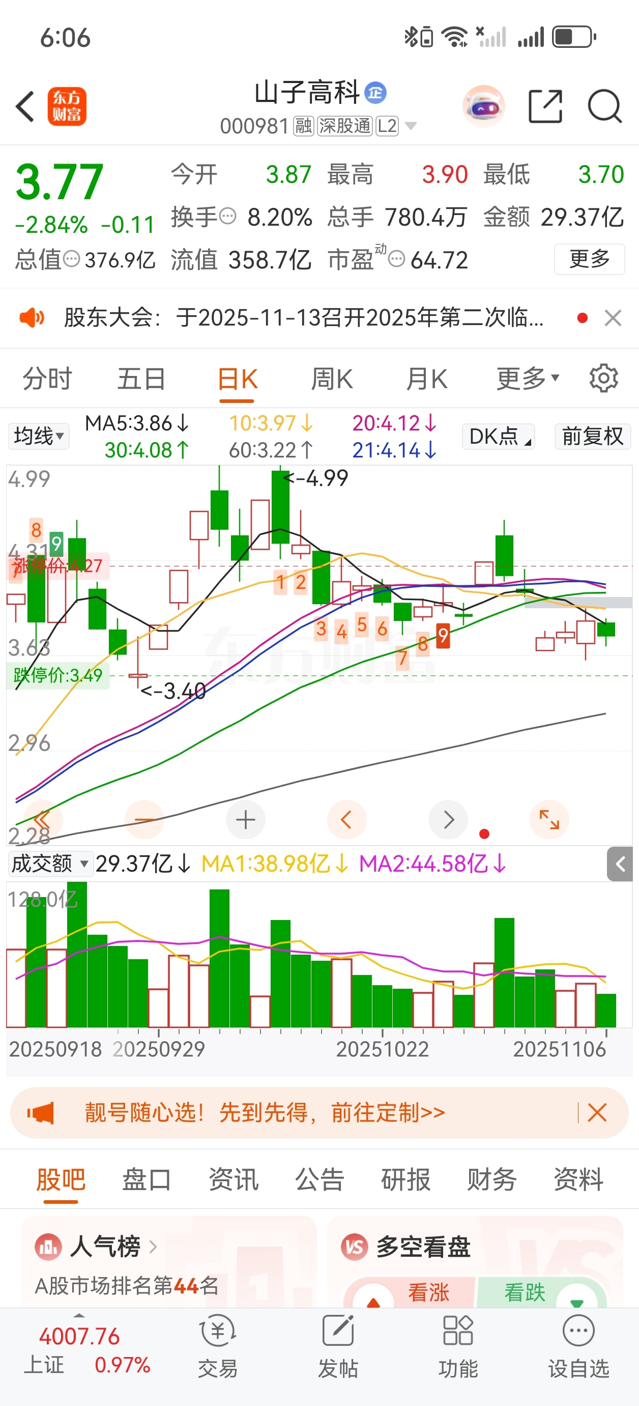 $山子高科(SZ000981)$ 看样子是准备横盘向下了,今天没突破后面就难受了