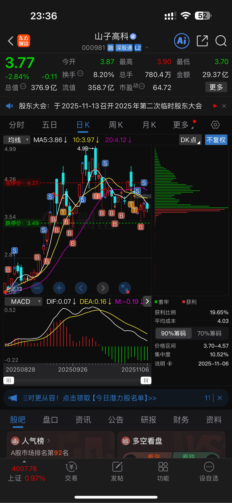$山子高科(SZ000981)$ 你最好给我跌到一块去,反正我不在了