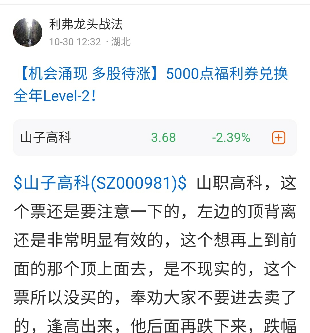 山子高科,我在10月30号的时候,有发文解析过他,我说这个票逢高要卖,没买的不要