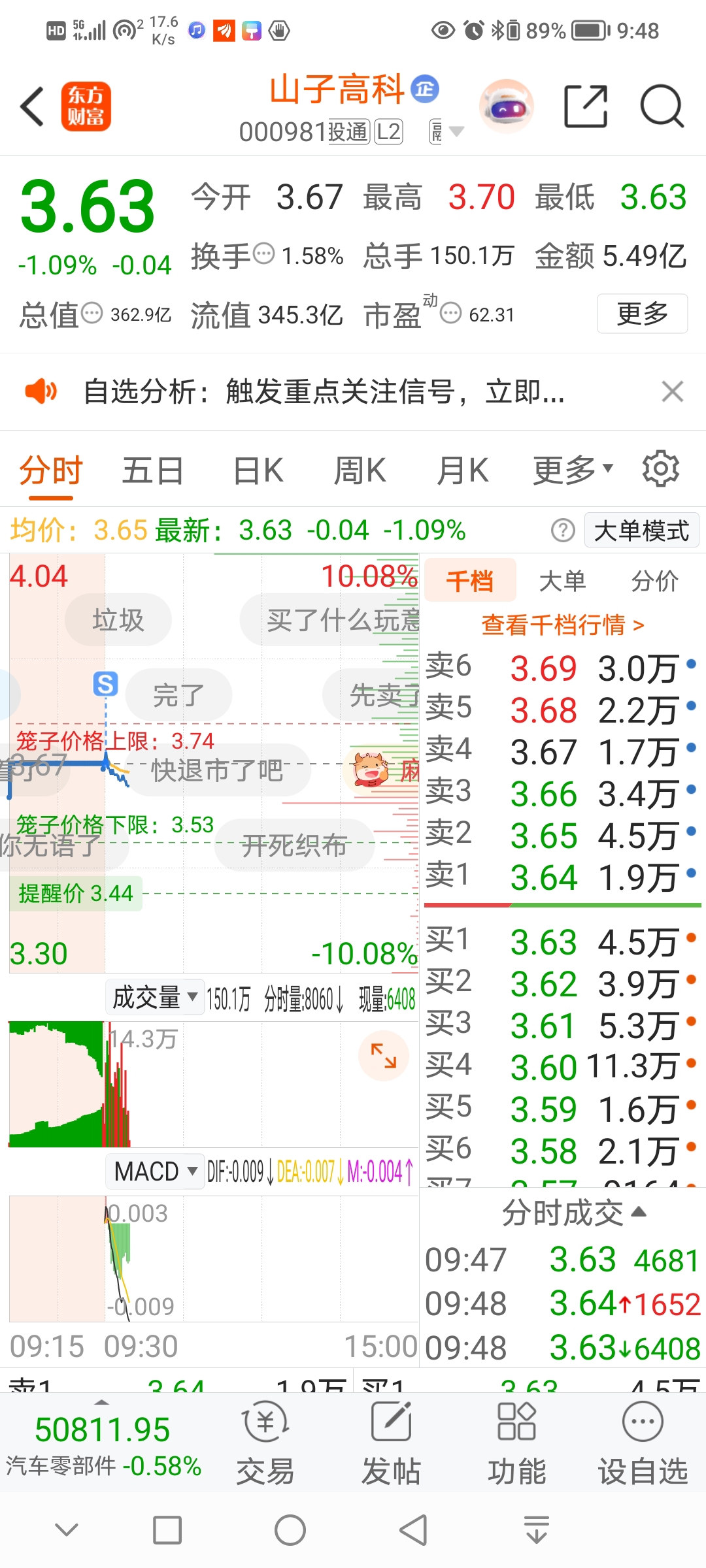 $山子高科(SZ000981)$ 368先出来,等等还是缩量就去京运通