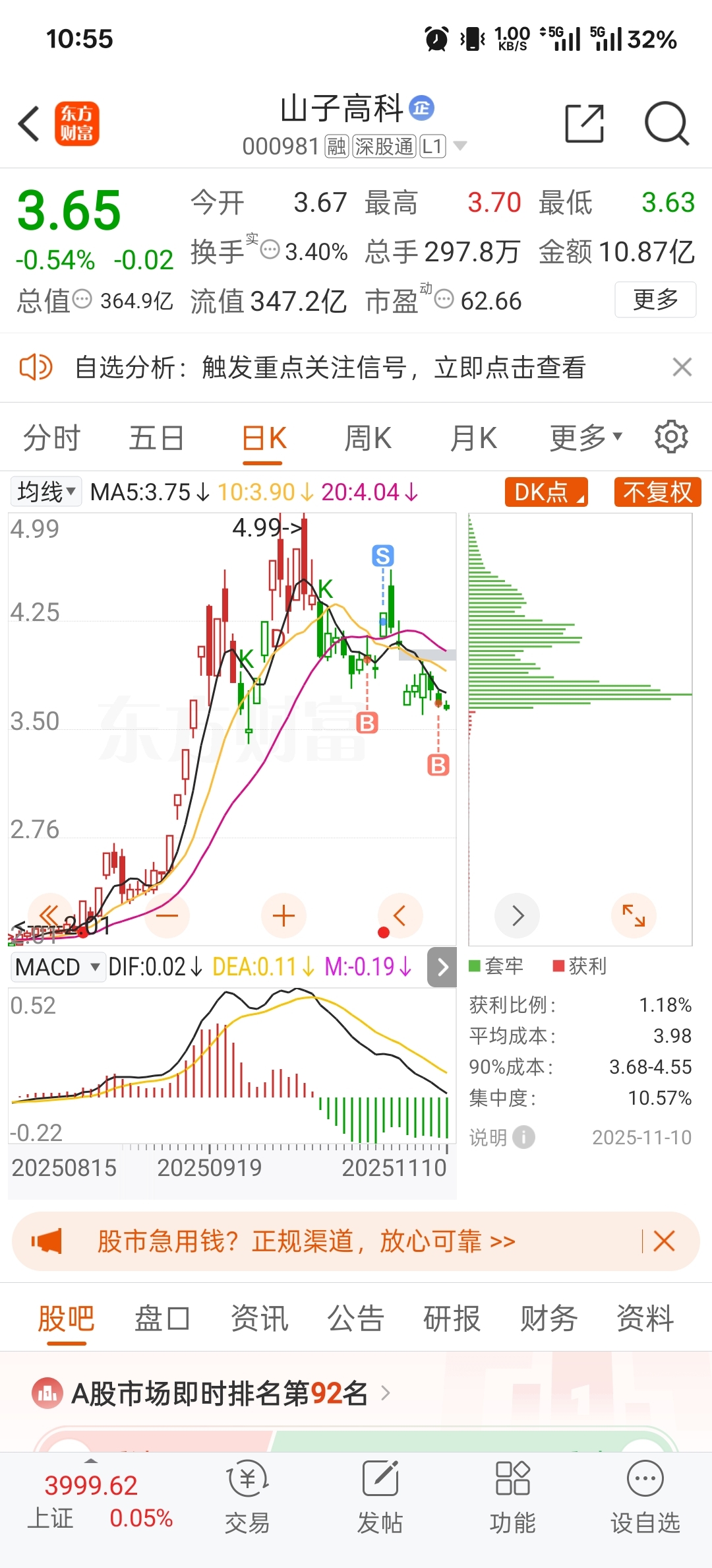 $山子高科(SZ000981)$ 这套牢盘无敌了,看样子还得砸,向下砸到3块附近套牢盘割肉才会好转