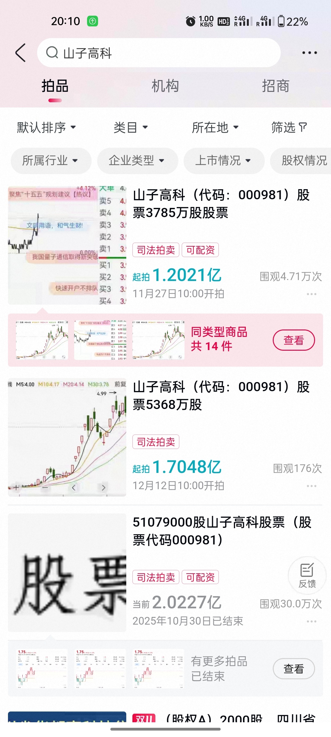 $山子高科(SZ000981)$ 各位这货能退市?法拍上这货霸屏了