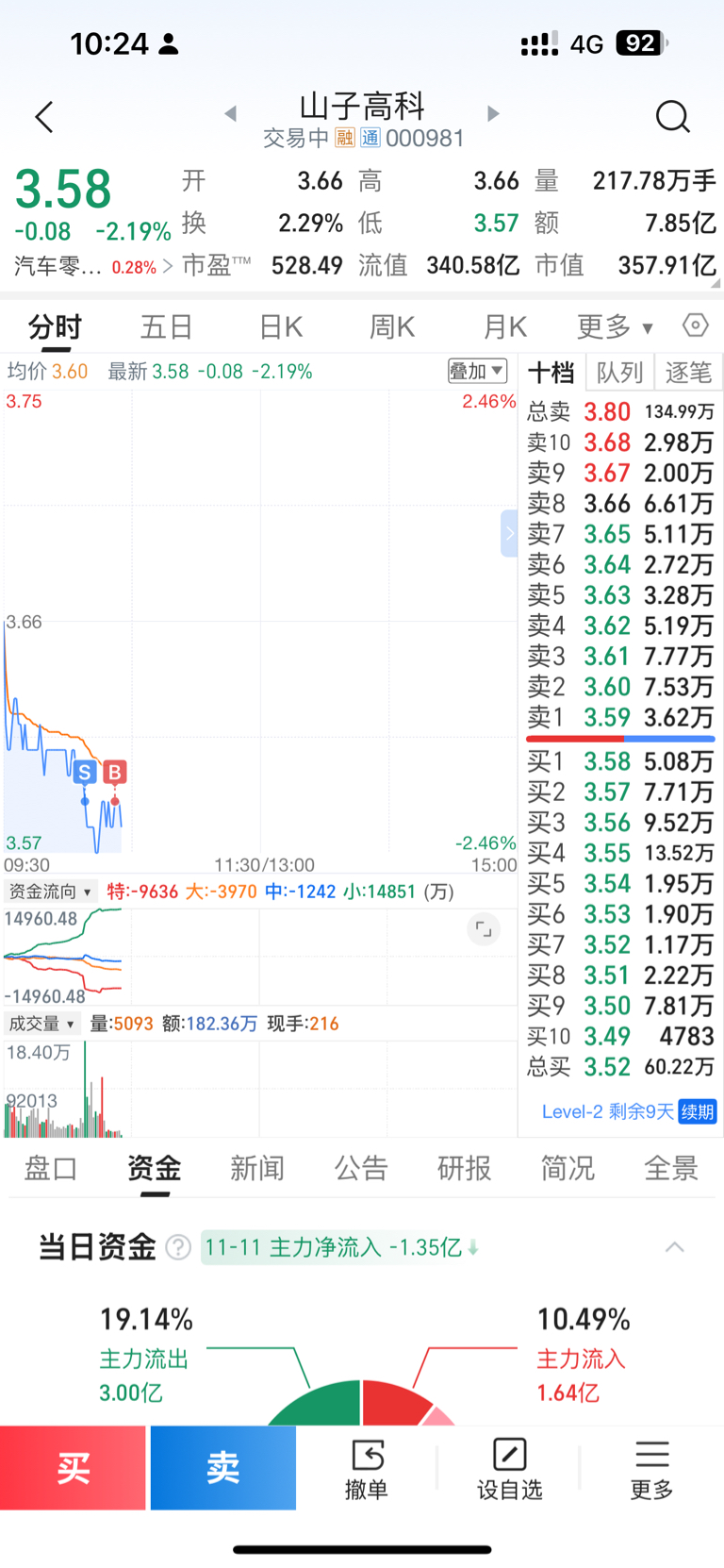 $山子高科(SZ000981)$ S—B战法。早上跑了就好
