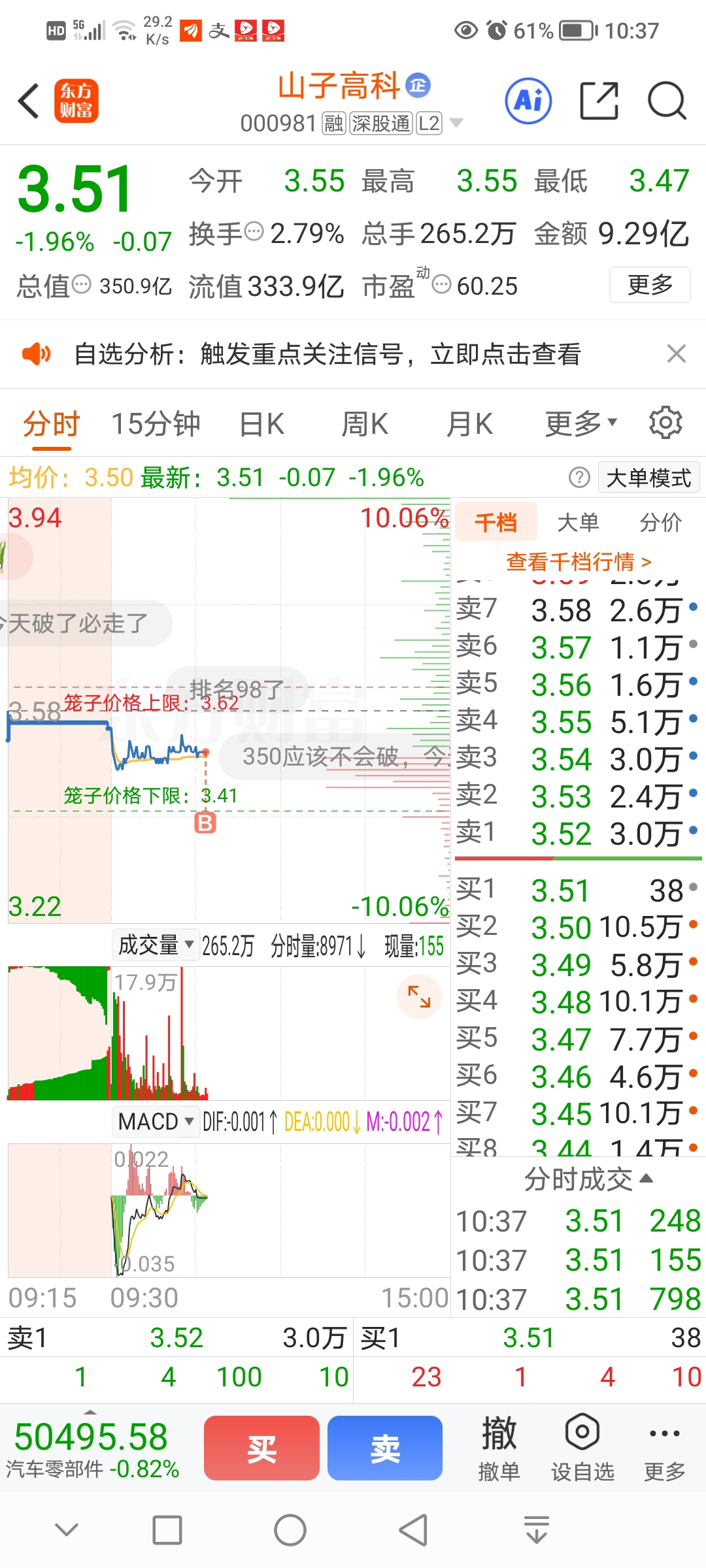 $山子高科(SZ000981)$ 慌啥?又建仓,昨天3.63卖有差价,,