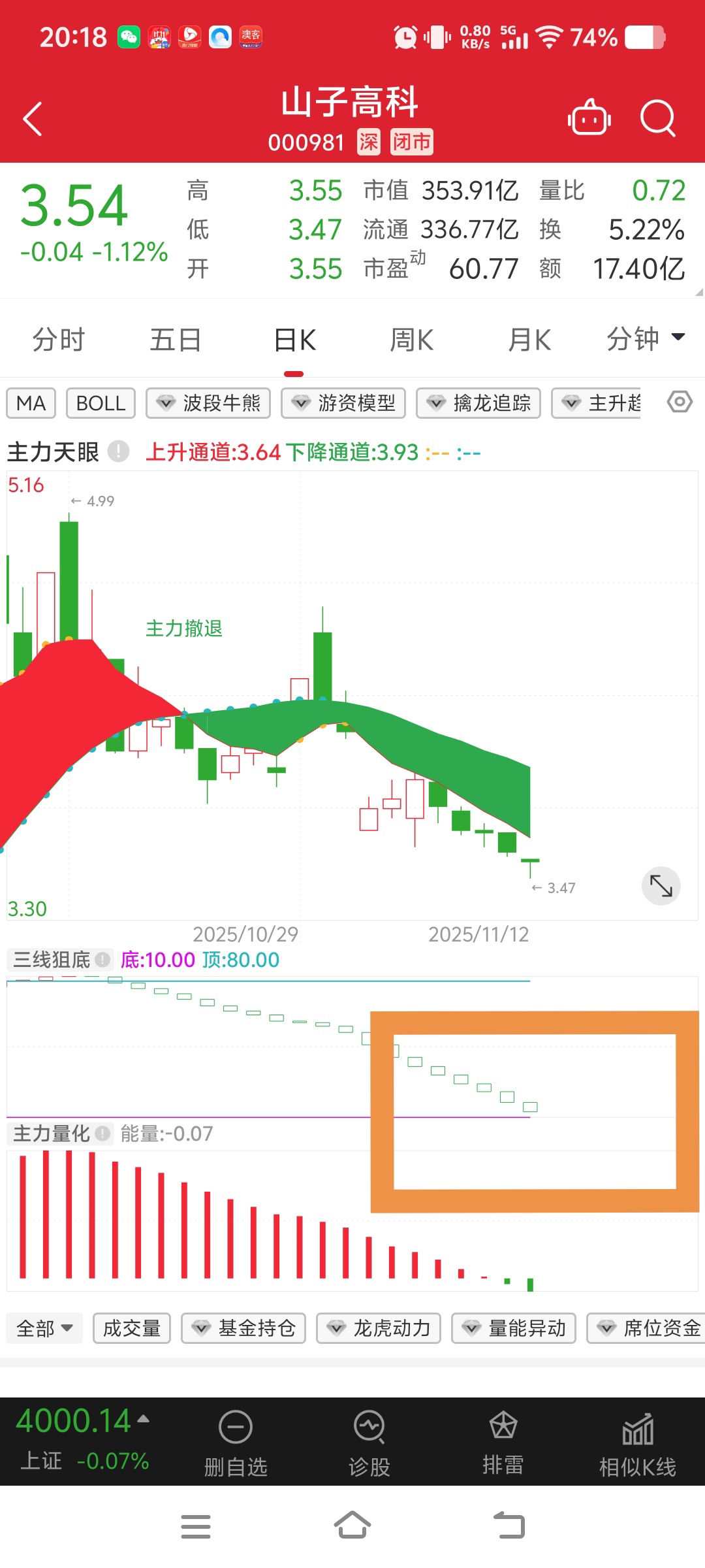 $山子高科(SZ000981)$ 今天的小长腿,技术上可以进点货的,波段底部已触碰,明天大长腿、银底会出现,可以搏一个小反弹了。。但不是主升浪,主力大资金还没有来。
