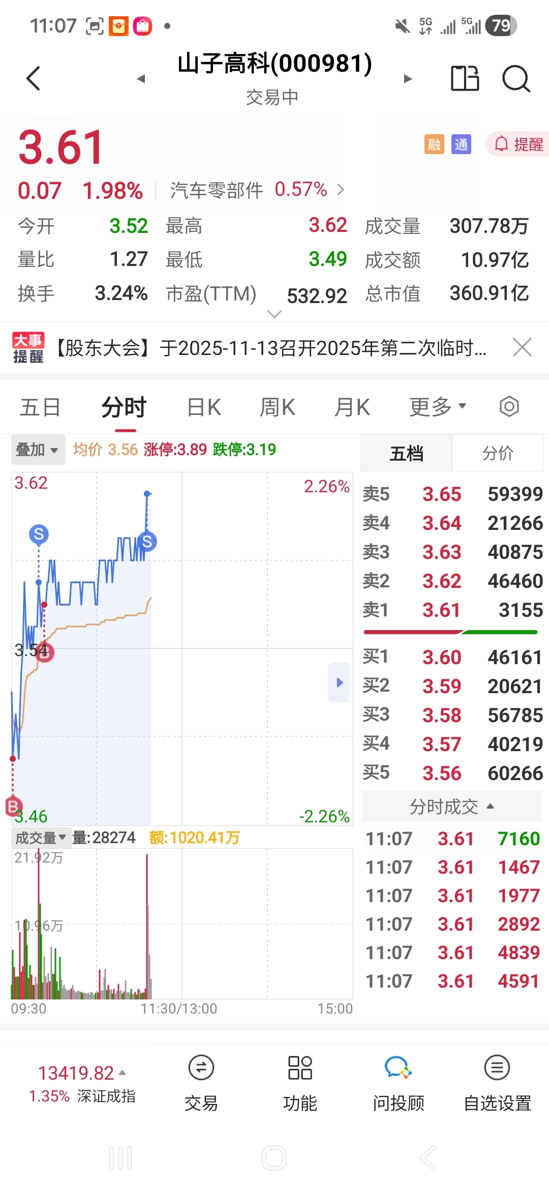 $山子高科(SZ000981)$ 回本了3.5买,3.6卖,3.55买,3.6卖。