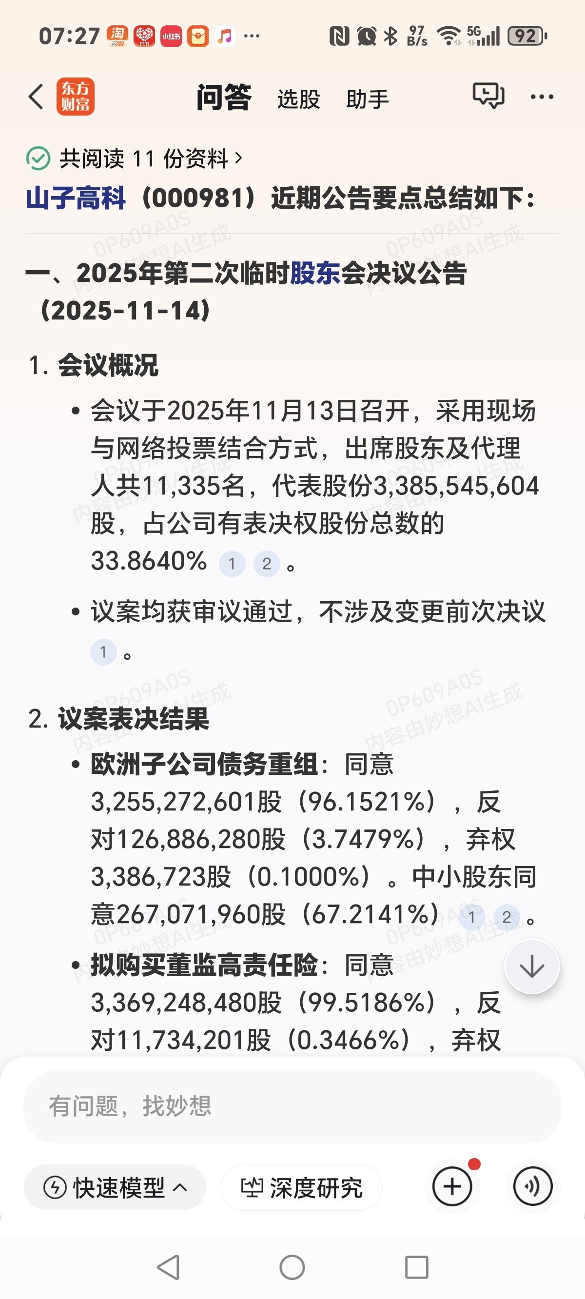 $山子高科(SZ000981)$ 今天看见公告了,昨天开了董事会,全部同意,是利好。