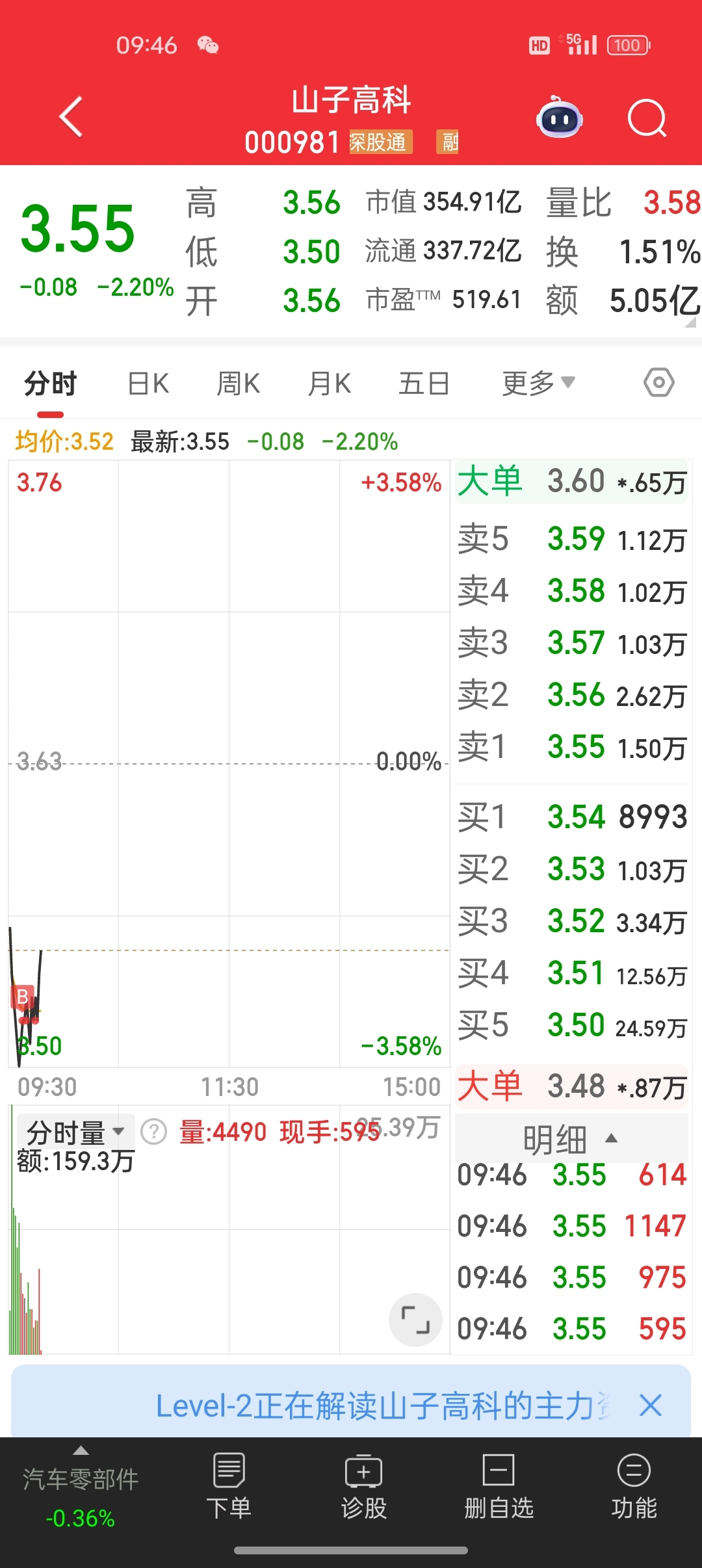 今天刚买人就赚了,报告成本3.52,现价3.53,小赚哈哈,我全仓啦