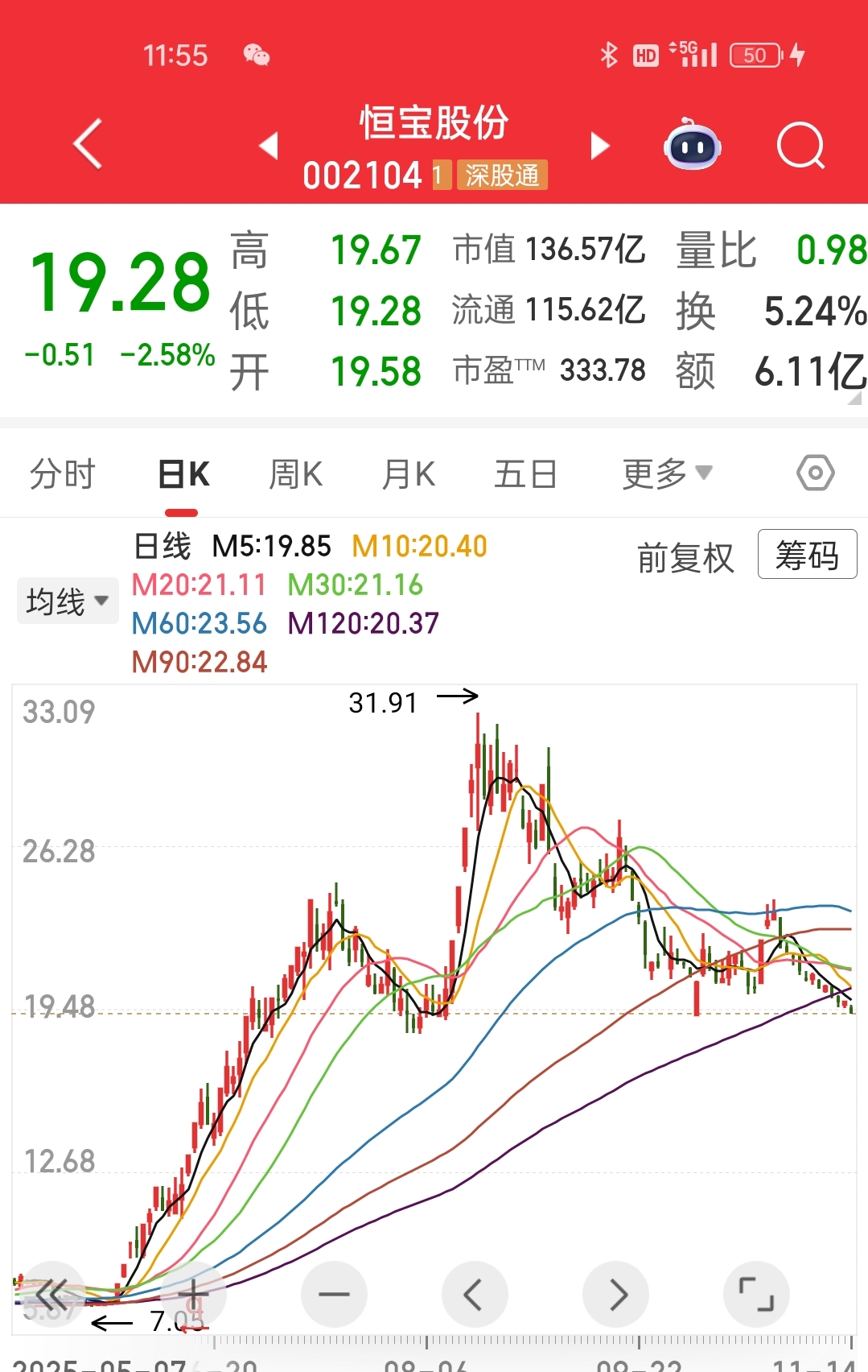 顶部这些套牢筹码这两天没怎么动,说明很多人还在期待趋势扭转。现在山子高科均线呈现