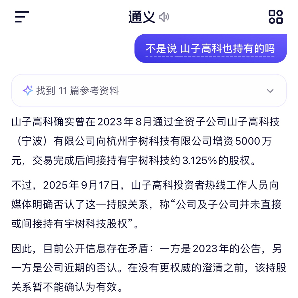 $山子高科(SZ000981)$ 到底有没有持有宇树科技的股份?