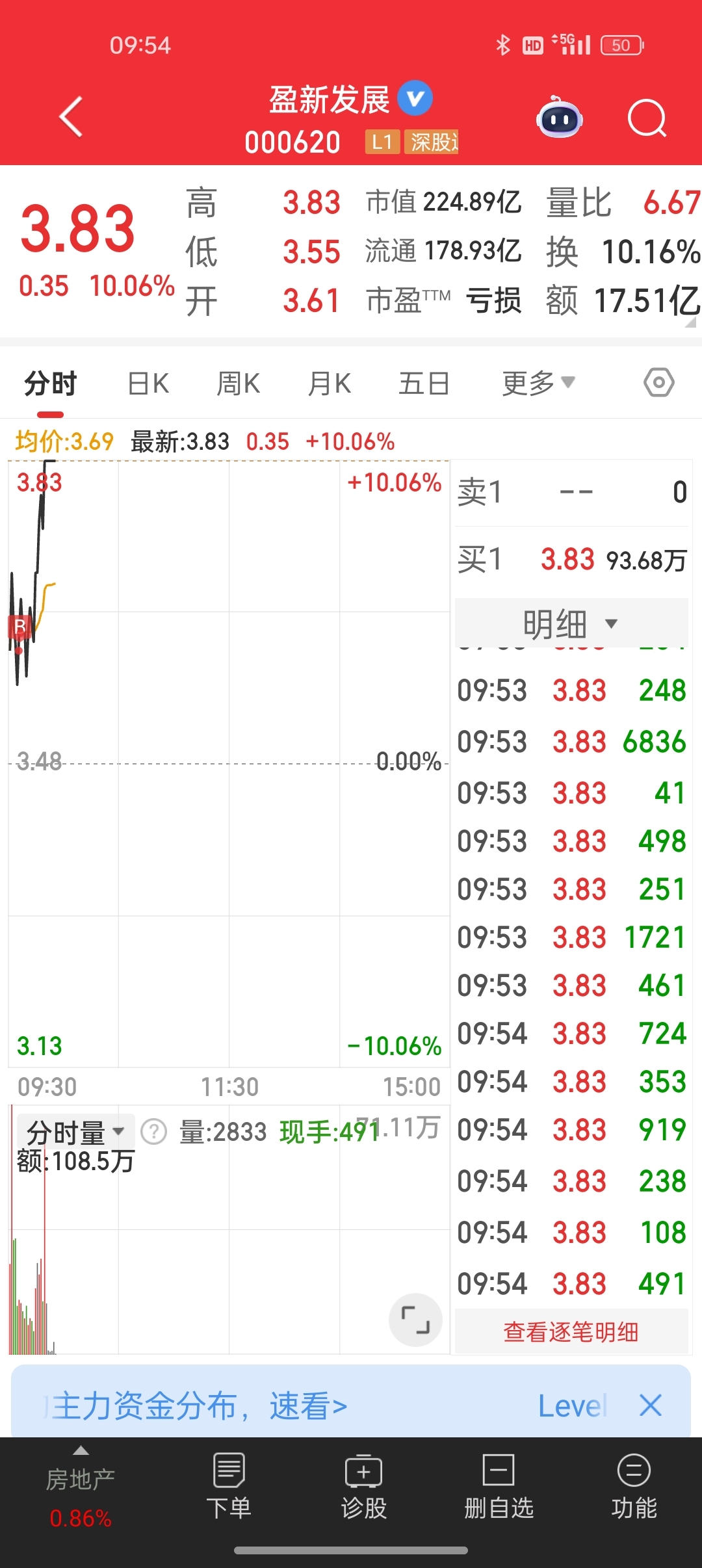 山子高科,我今天割肉斩仓跑了,然后3.62买入迎新发展涨停板啦,我这在吧里什么水