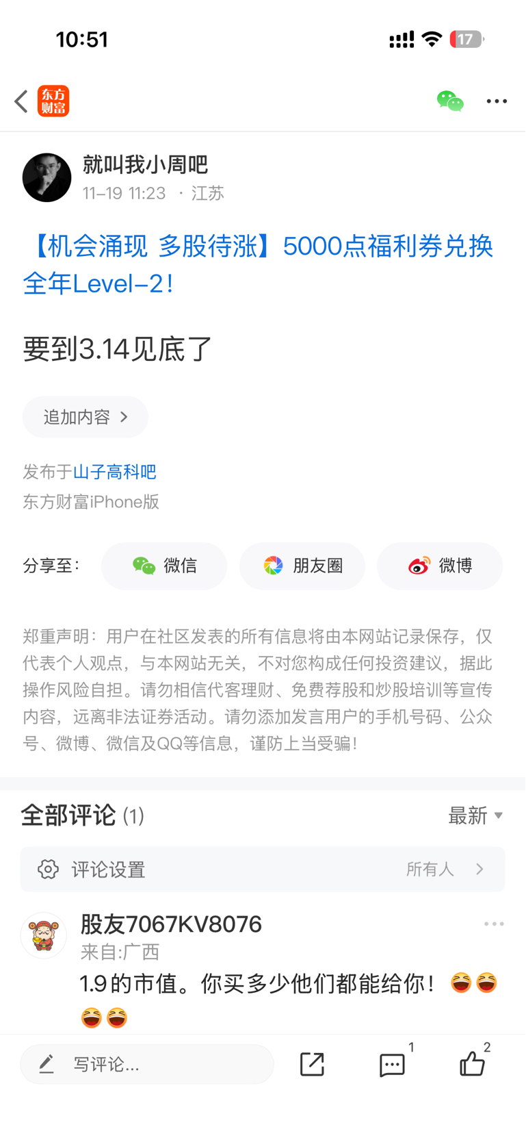 温馨提示: 1.根据《证券法》规定,禁止编造、传播虚假信息或者误导性信息,扰乱证券市场;2.用户在本社区发表的所有资料、言论等仅代表个人观点,与本网站立场无关,不对您构成任何投资建议。用户应基于自己的独立判断,自行决定证券投资并承担相应风险。《东方财富社区管理规定》