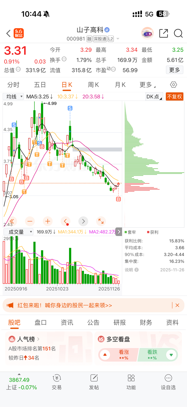 $山子高科(SZ000981)$ 都这个位置了兄弟们还卖啥