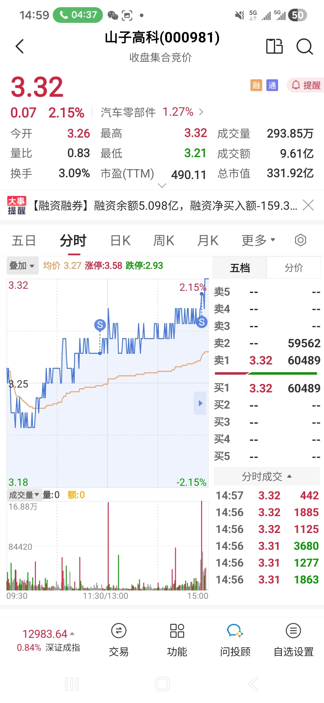 $山子高科(SZ000981)$ 飞了飞了 没注意3.31是开盘挂上去的3.3没接回来,还没回本那。