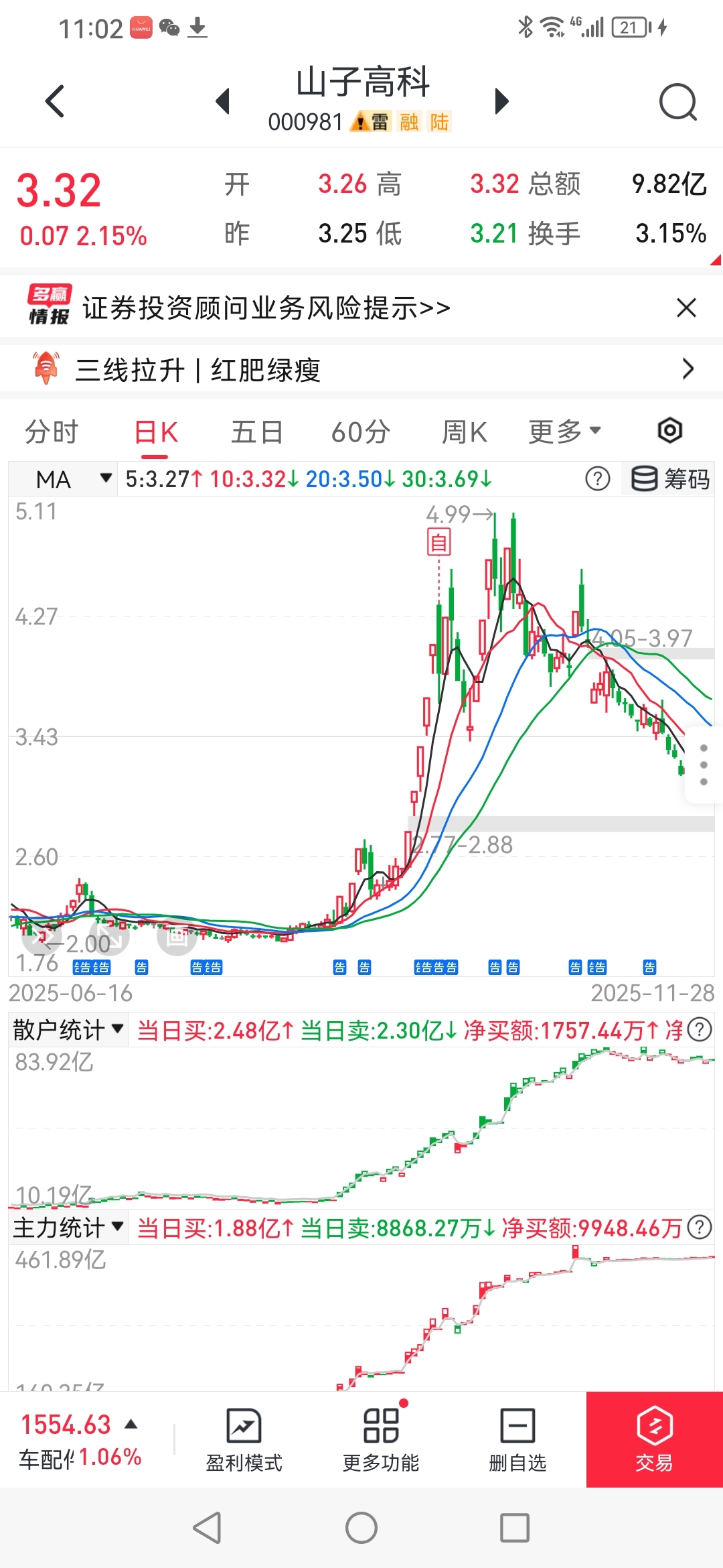 $山子高科(SZ000981)$ 经传多赢手机版数据短线王123元年费。多空大单思想,机构专用量化程序,及量化庄程序,只有一个机构专用量化能控盘,其他机构专用是迷惑大单的,大单跟错会跌。还得有能看见机构名称的软件,自己去找。实力弱的他们在跟买。我不知道那软件,拉升得会看盘