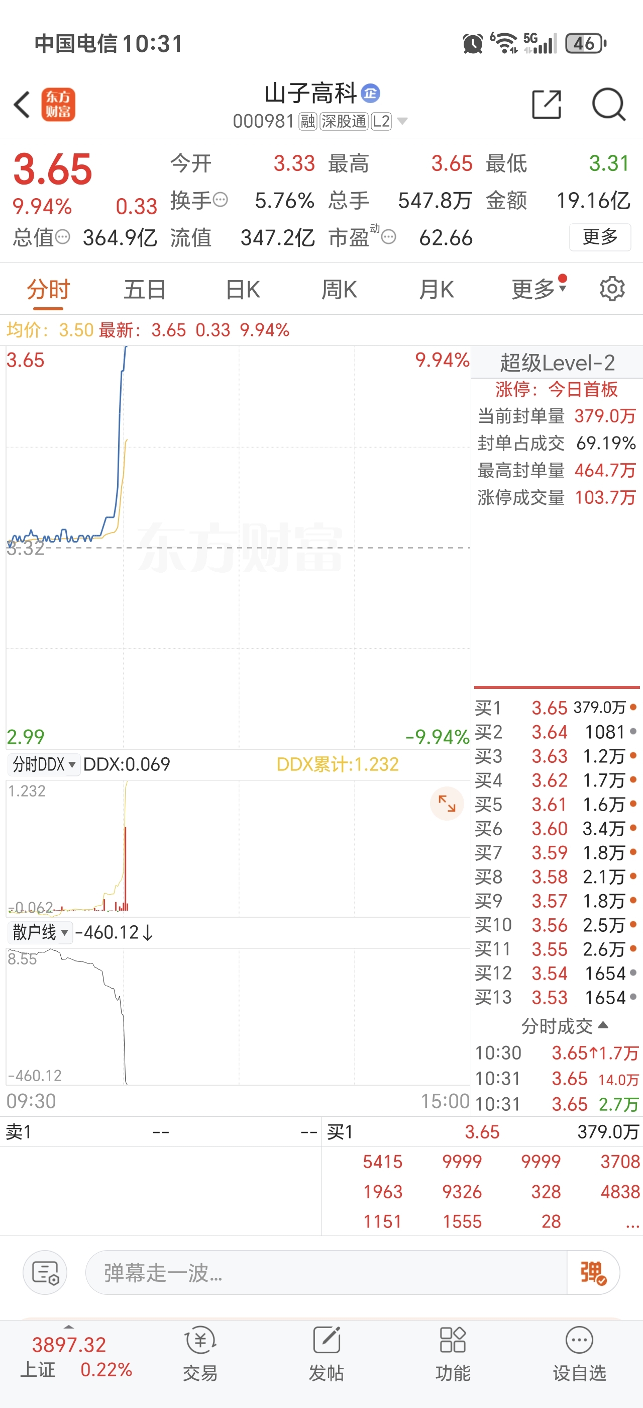 $山子高科(SZ000981)$ 四百万手封单都打开?