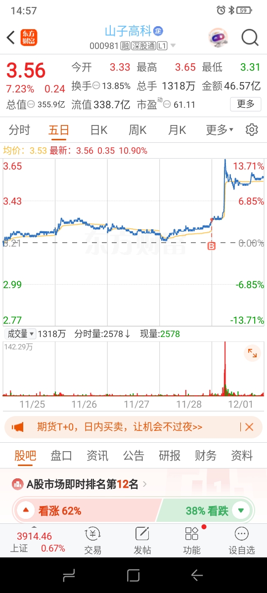 $山子高科(SZ000981)$ 山子高科新公司成立,堵他大涨三天,所以今早进山子高科提前布局