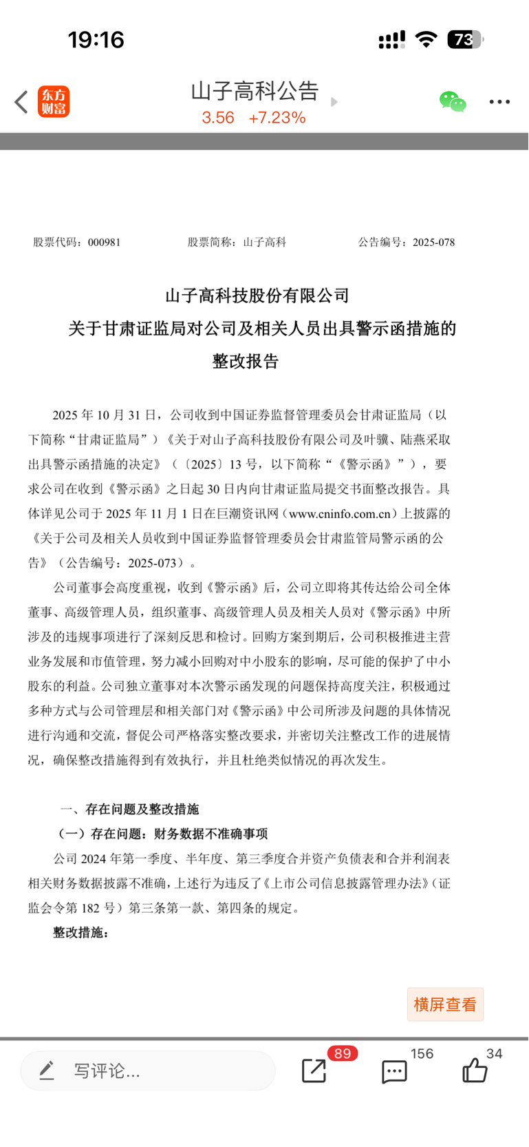 $山子高科(SZ000981)$ 今天又是拉高出货格局,又是财务数据不准,意味等变ST