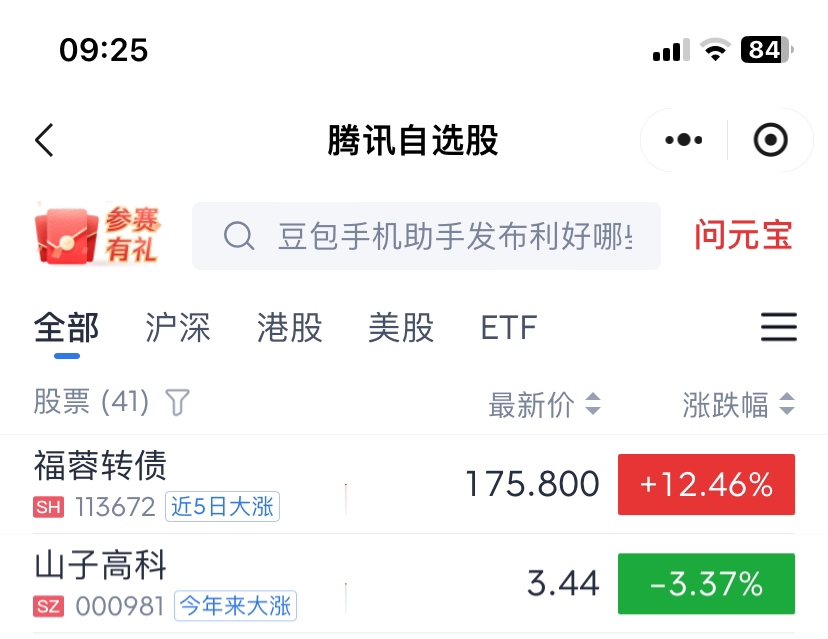 $山子高科(SZ000981)$ 真服了、昨天福蓉转债不进、选进了你