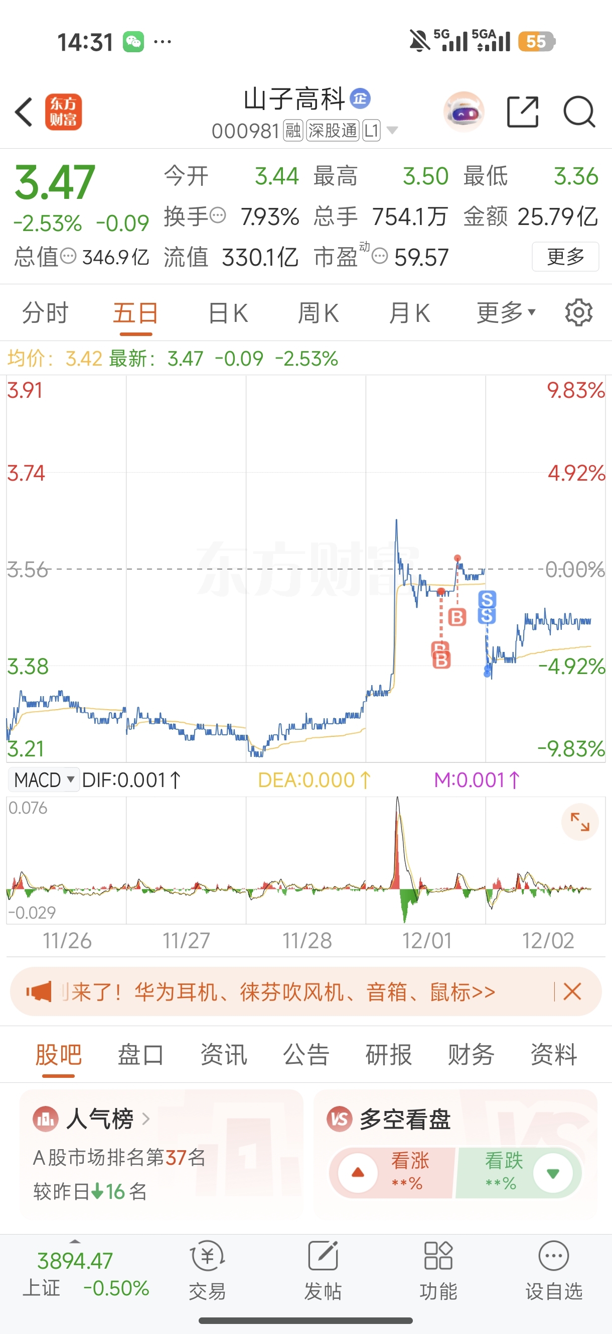 $山子高科(SZ000981)$ 真的很烦,山子高科吃我个苹果promax满配