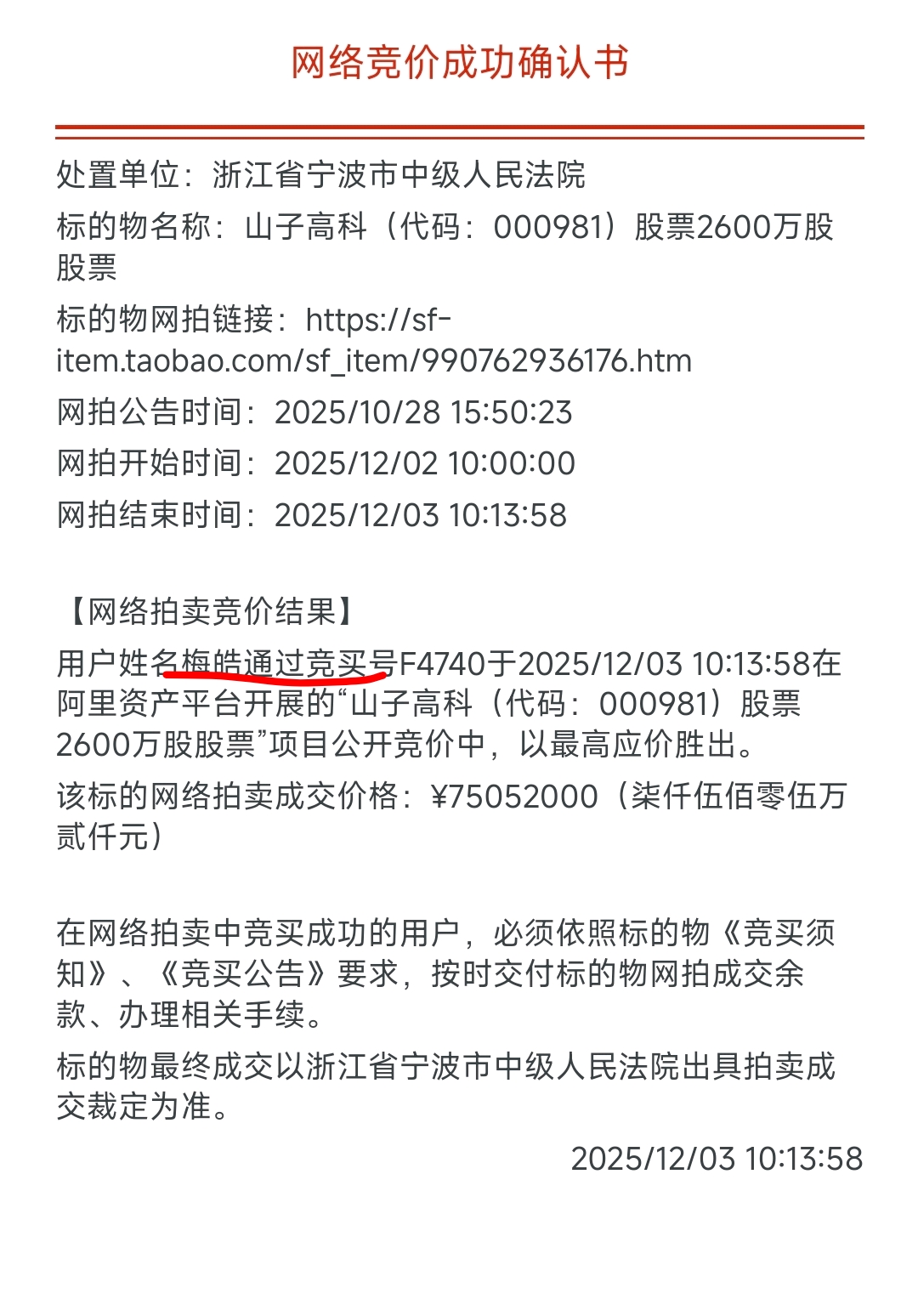 $山子高科(SZ000981)$ 梅皓成功拍的,是游资?还是关联人士?