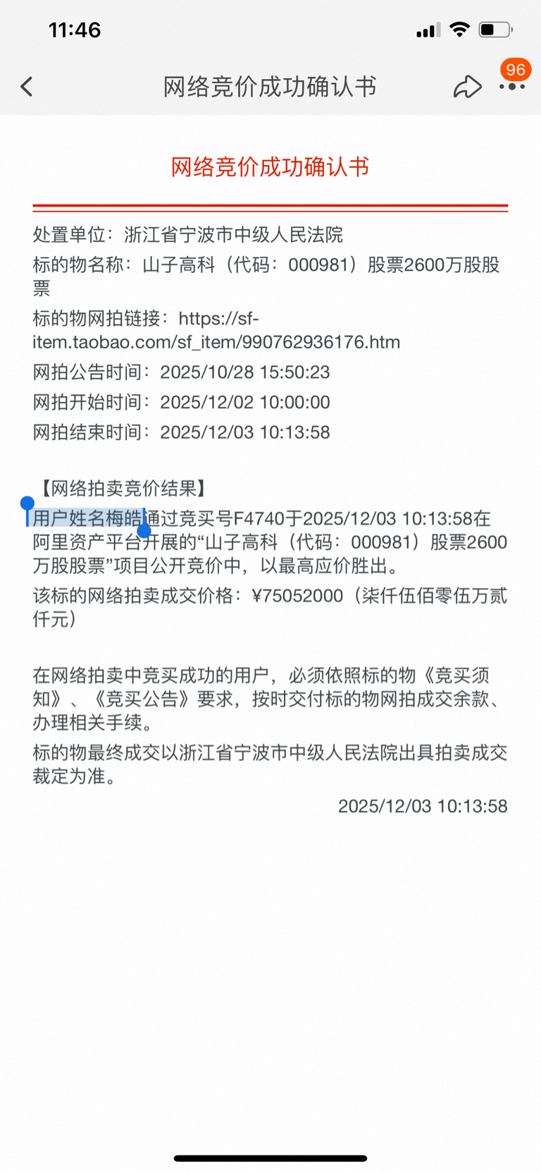 $山子高科(SZ000981)$ 竞拍成功者“梅皓”是宁波银亿房地产开发有限公司等公司高管监事