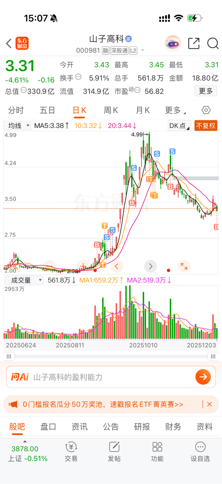 之前4.17全部清仓了,之前成本是2.22。两个月再次入局,3.37,拿住吧!做