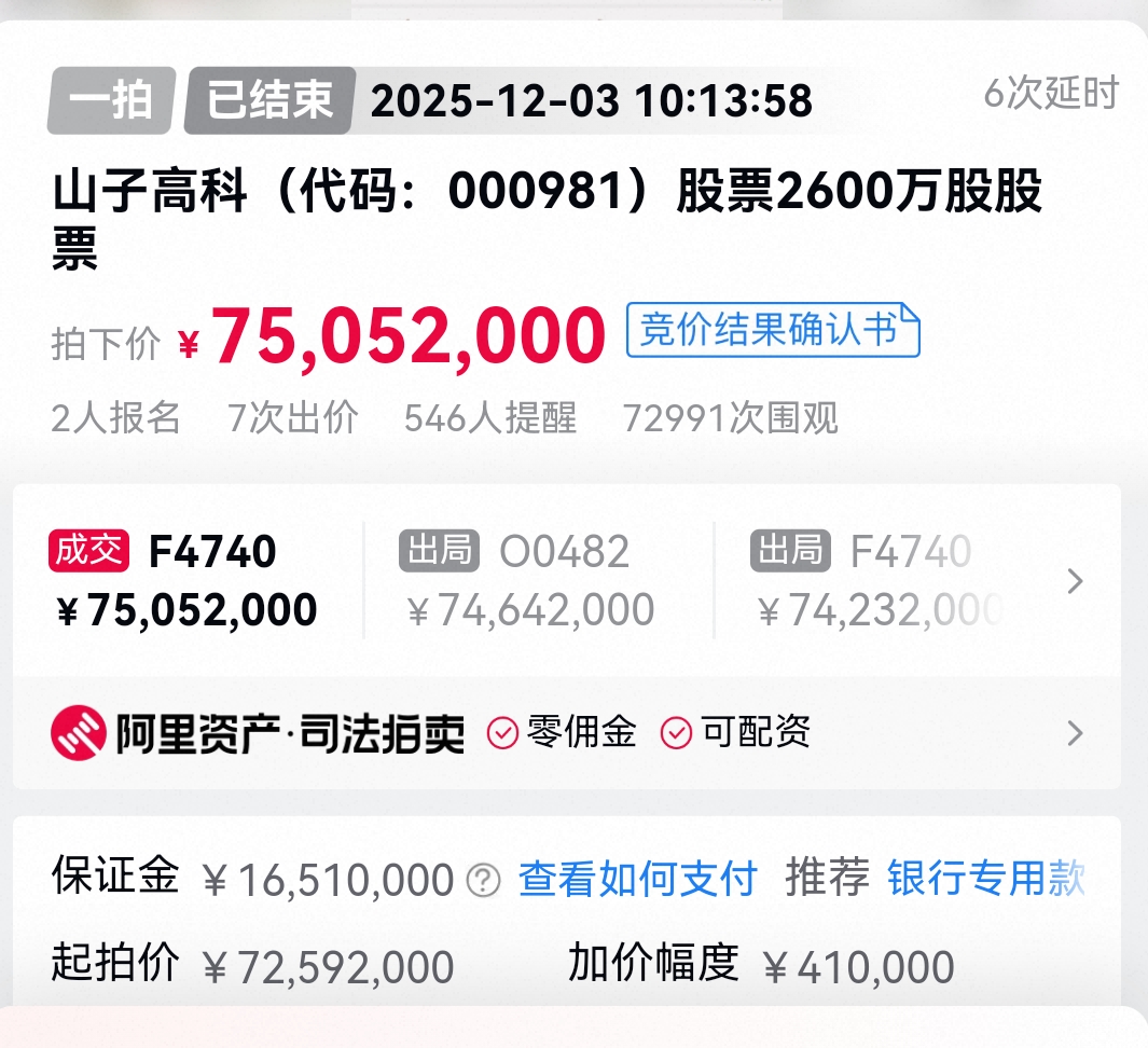 $山子高科(SZ000981)$ 这炒个毛线啊,人家法拍直接赚1000多万,有钱的去法拍或组团法拍
