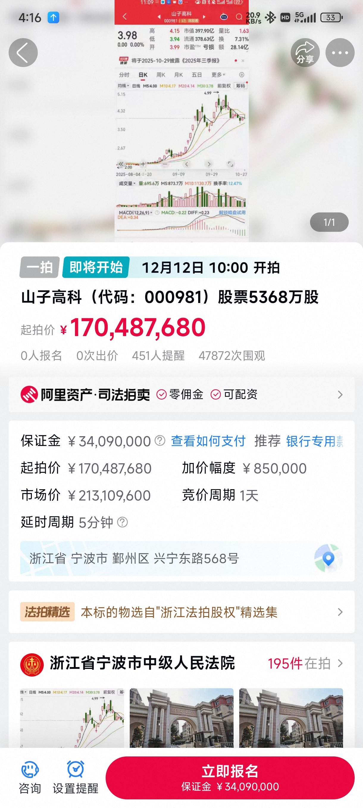 这个估计要流拍了。三块多,和现价差不多,如果这能拍出去估计股价马上4块
