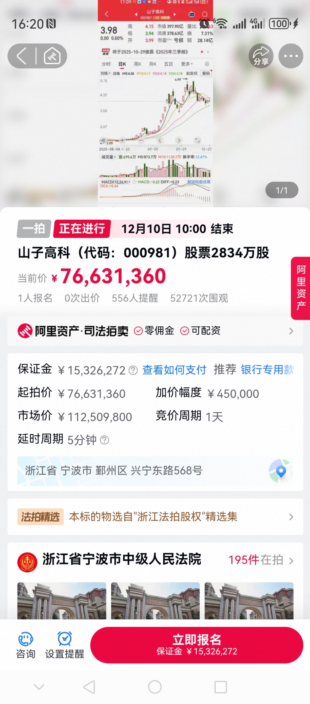 $山子高科(SZ000981)$ 已经有人报名了,但是股价才2.704