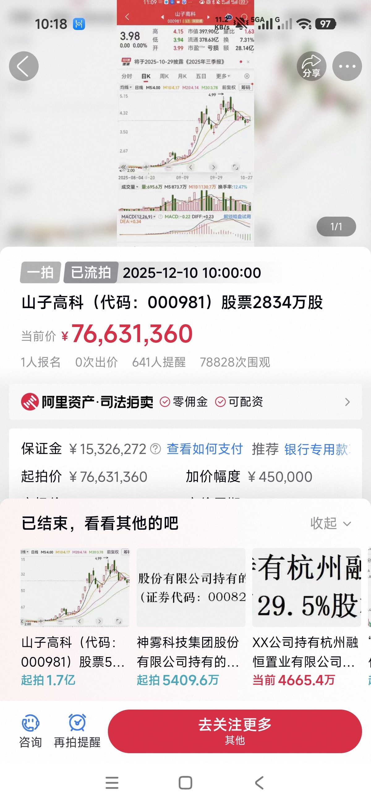 $山子高科(SZ000981)$ 各位散了吧。流拍了