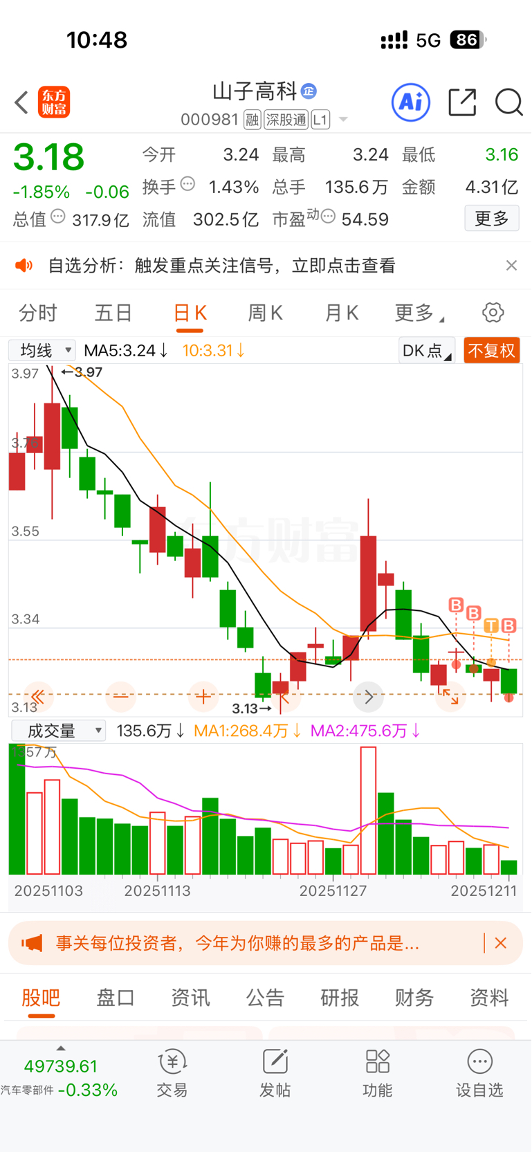 你敢跌我就敢买有本事你砸到sT去啊勾庄