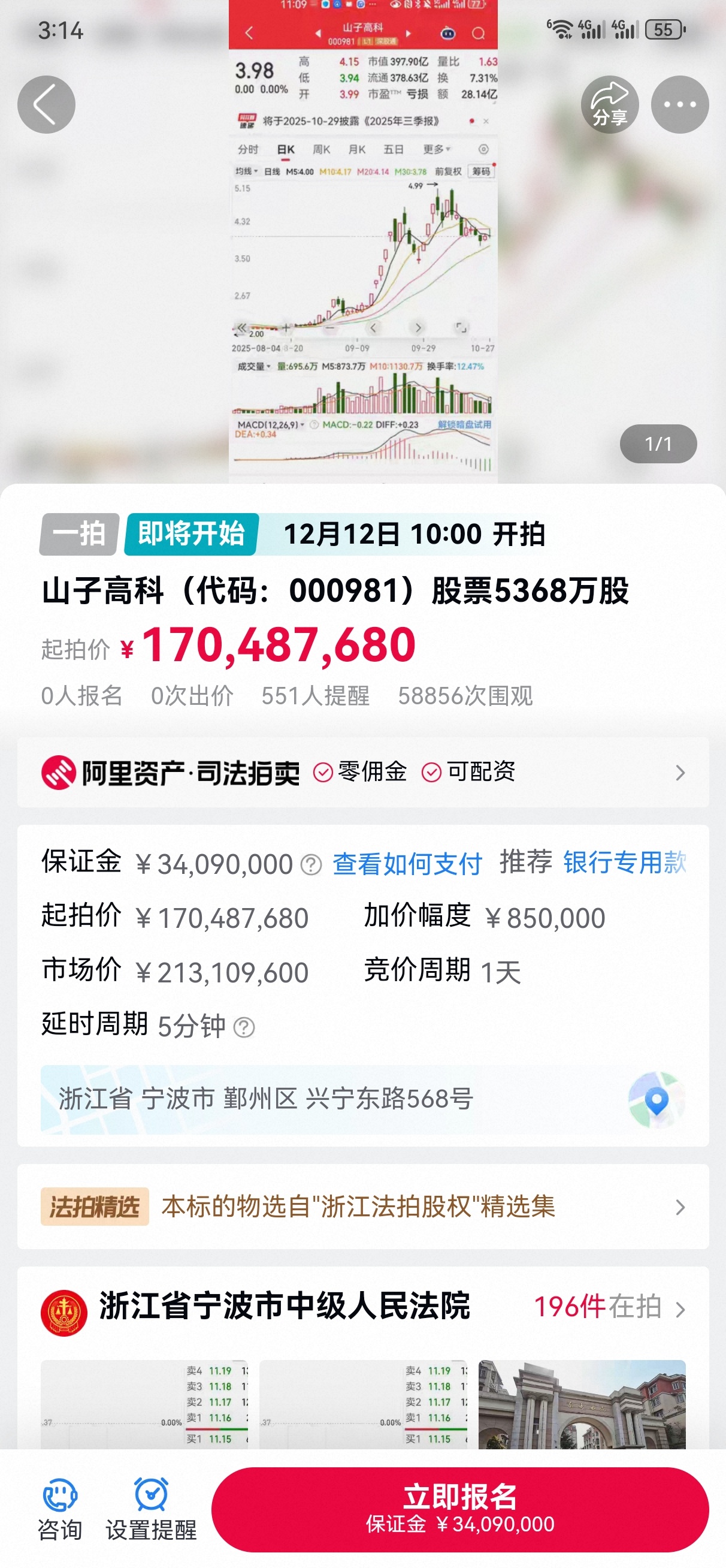 明天起拍价150733440,这都少了2000万,看看明天成交价多少,持股一个月