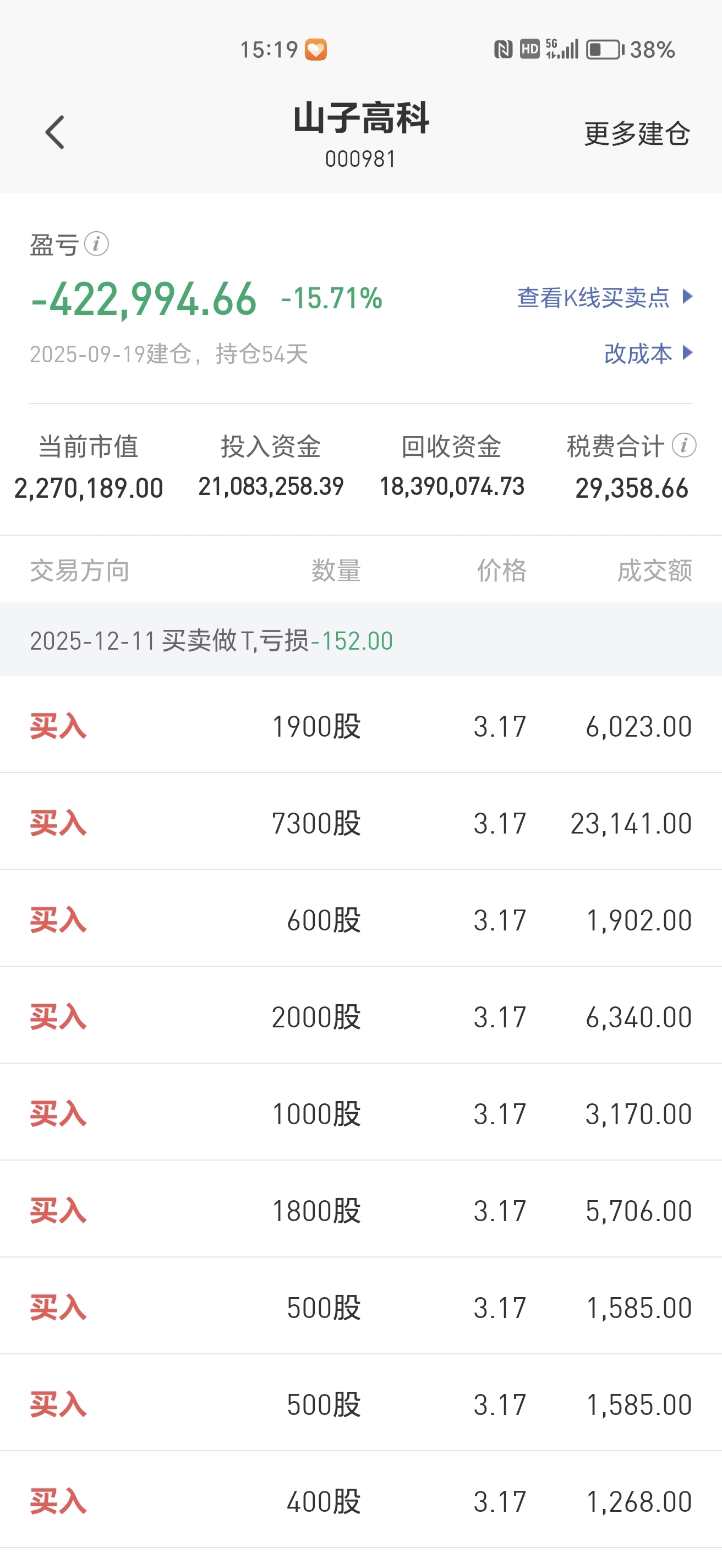 $山子高科(SZ000981)$ 从喜盈利四十五个到亏四十五个,感谢山子哥哥带我坐过山车