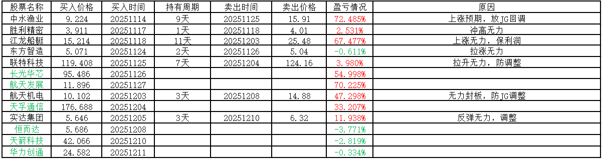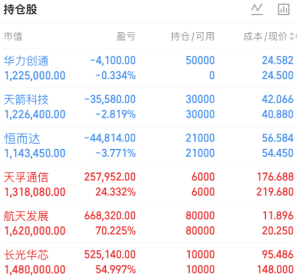 华力创通:商业航天+卫星通信+前三季度业绩大幅增长+军工+无人驾驶。该股自上周五站上60日线后,就一直稳定在其上运行,并且放量拉涨,K线呈现典型的多头排列模式,于是早盘探底的时候,笔者果断24.582介入,其后走高,可惜的是大盘不太给力,商业航天个股分化,该股大受影响,最终尾市逐步回落,但该股波动区间很小,并且丝守5日线上,而该股的上涨预期仍在,所以笔者因为后市该股继续上涨无虞,今日就是良性分歧,是正常调整,下周修复,当然应该继续研究关住了。