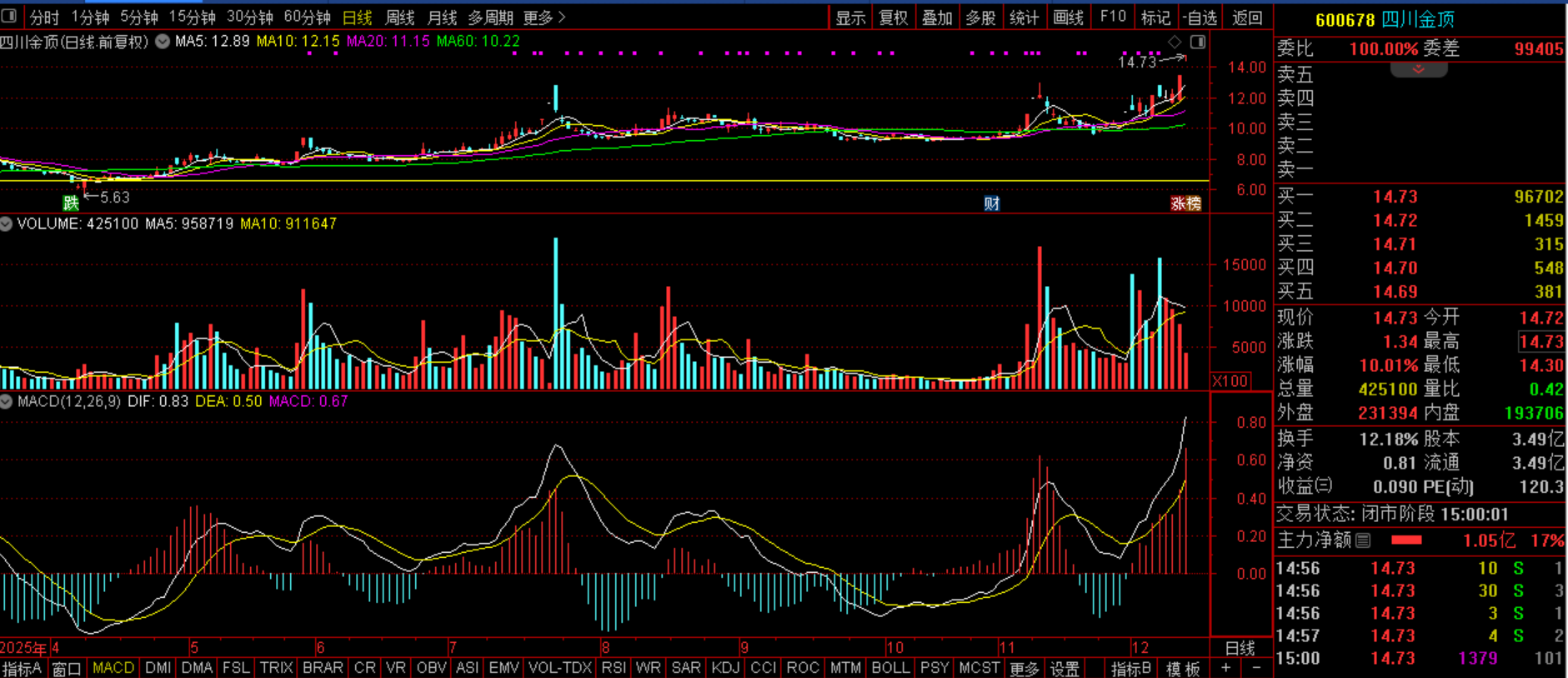 $四川金顶(SH600678)$(SZ600678):石灰石+商业航天+人形机器人+国企改革。今日该股大幅高开略一探底就迅速封板,这是突破的确认,上涨趋势的强化,料后市继续走涨新高,新一轮上涨或将开启。