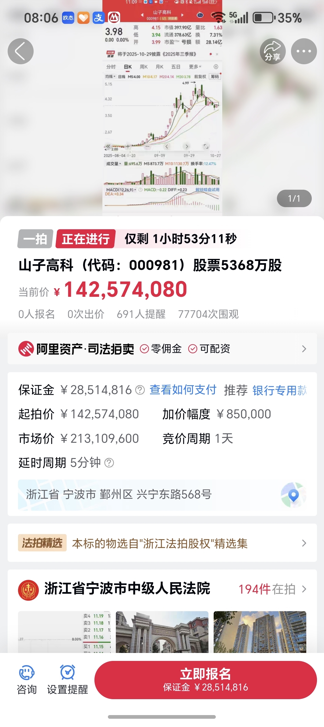 $山子高科(SZ000981)$ 看看阿里拍卖!不到3元的拍卖价?买到就赚钱,为啥没有人竞价,说明还会跌到2元。