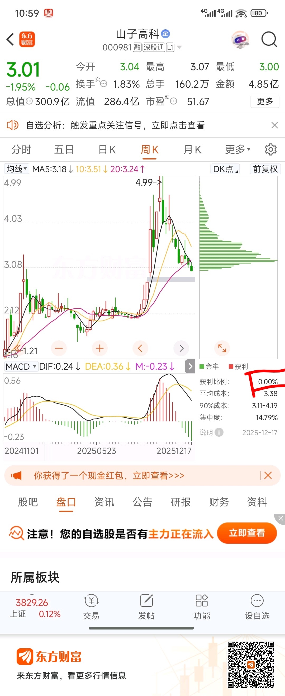 $山子高科(SZ000981)$ 获利比例0.00%,好厉害。