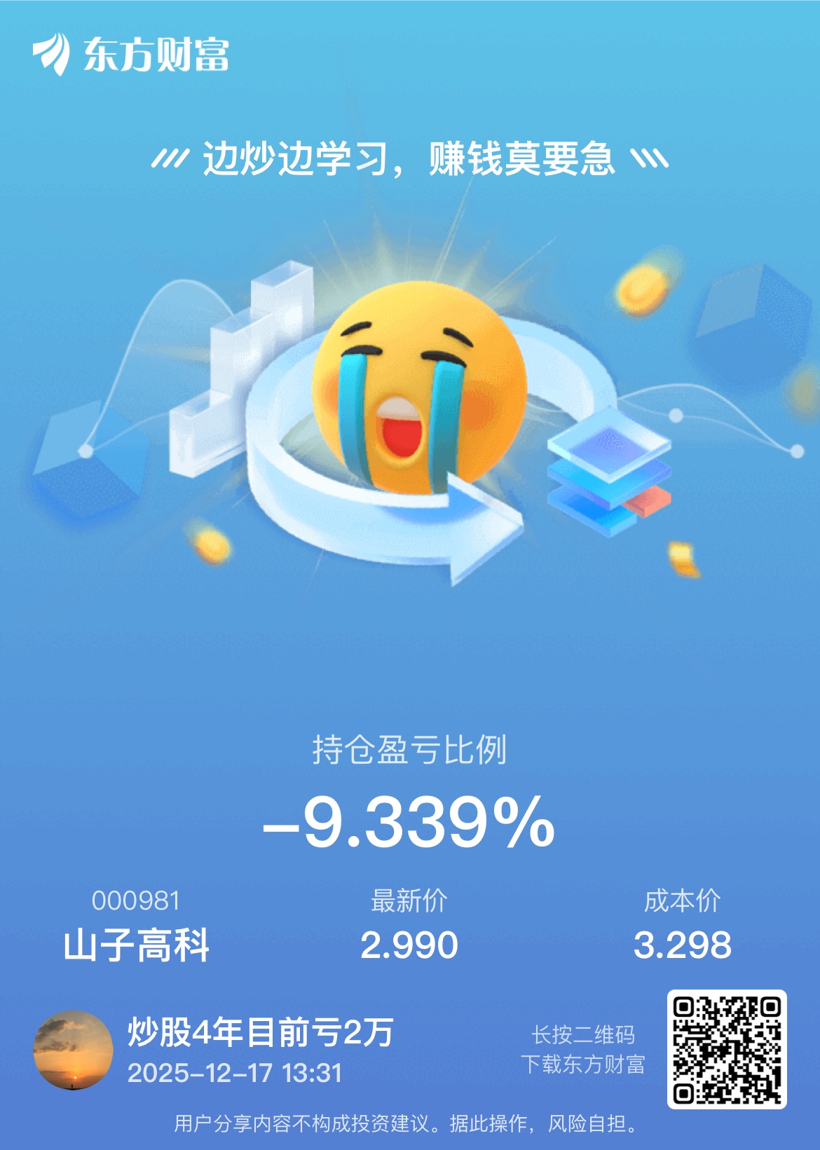 $山子高科(SZ000981)$ 等下个月工资,在补1万手,