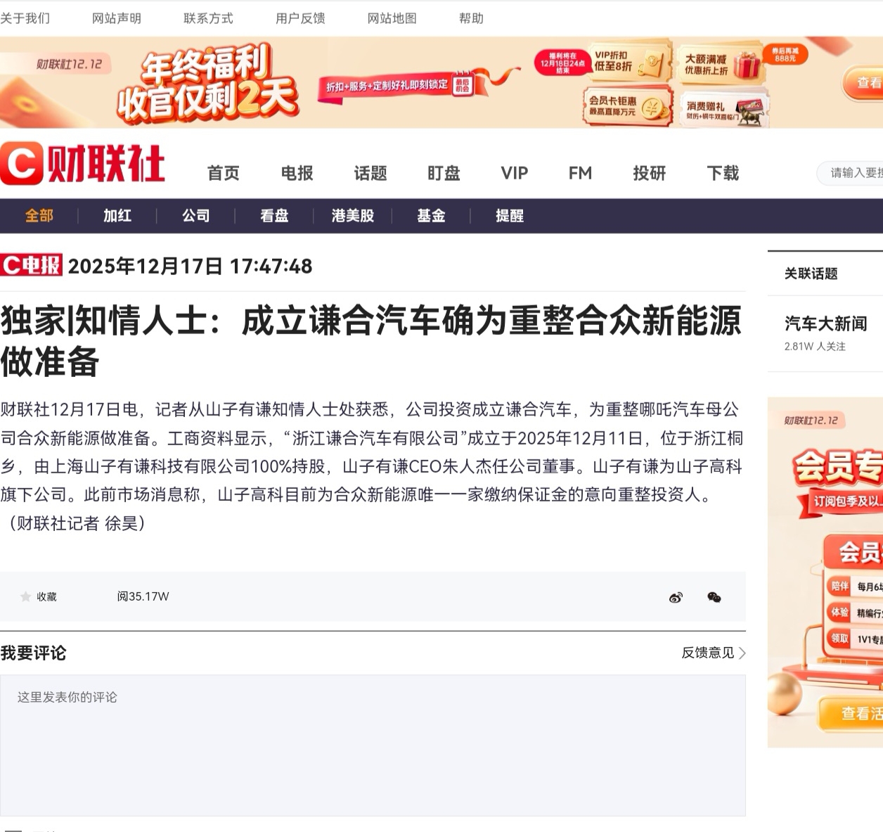 又是财联社,9.27就是财联社透露,山子高科为合众破产重整唯一意向者,直接逆转趋
