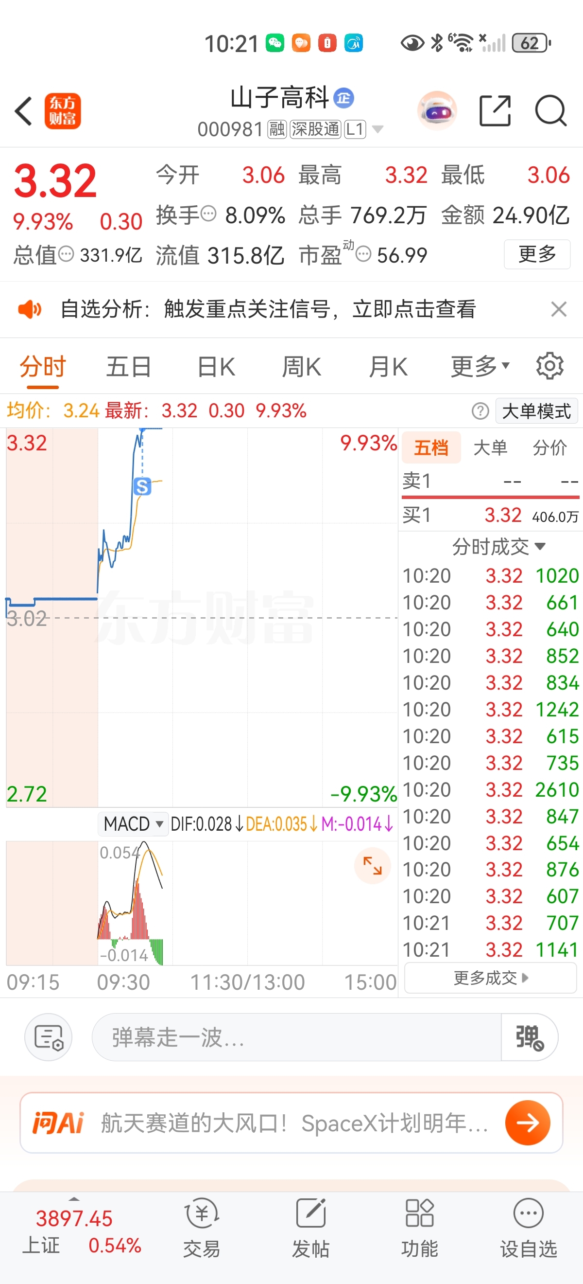 $山子高科(SZ000981)$ 做为一个韭菜非常自觉,挂的涨停竟然就卖出去了,拿不住就是拿不住