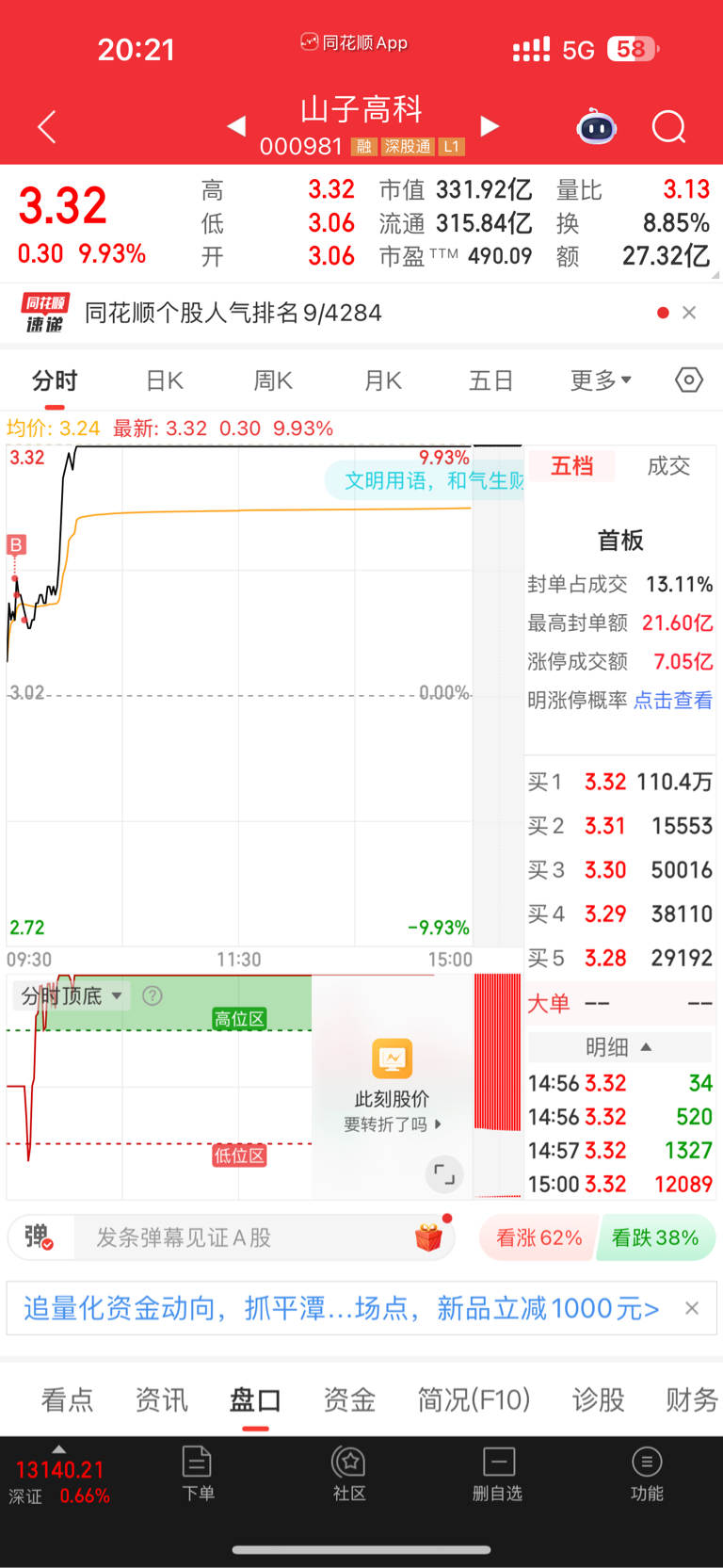 $山子高科(SZ000981)$ 技术,经验,盘感确实都有关系,但更重要是德行,尤其是积口德,懂得自然懂
