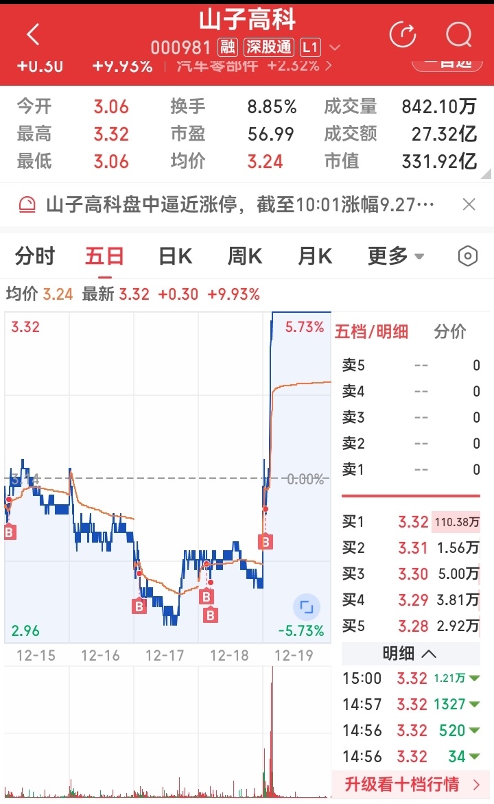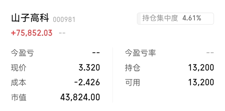 山子高科(不敢多买)只占总仓位的4.6%